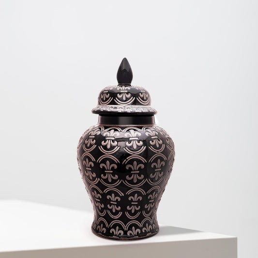 Decorative Round 14" & 18" Ginger Jar Black & Silver Combo